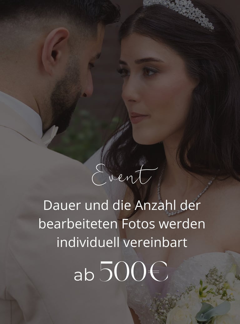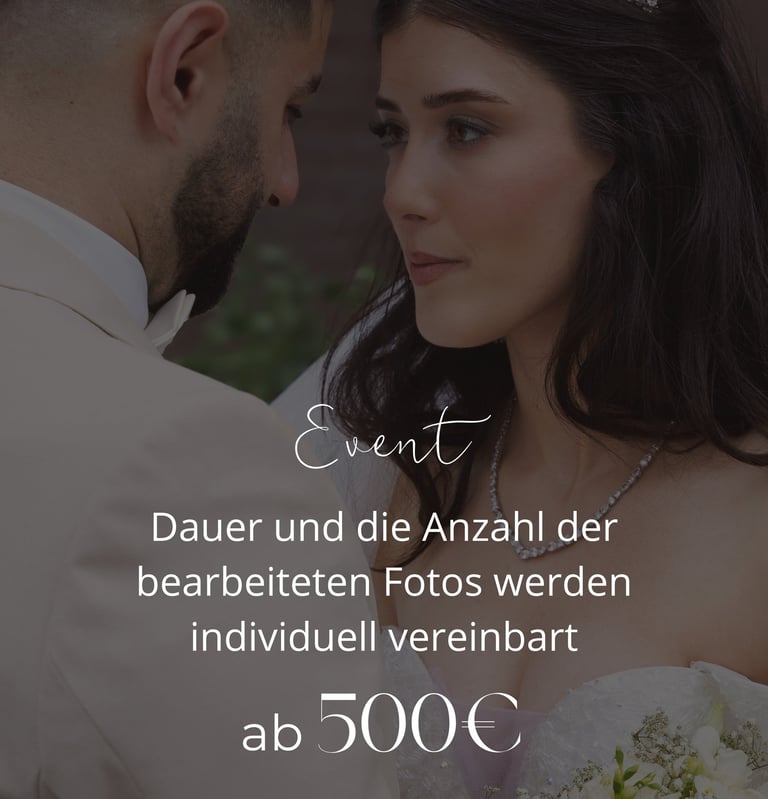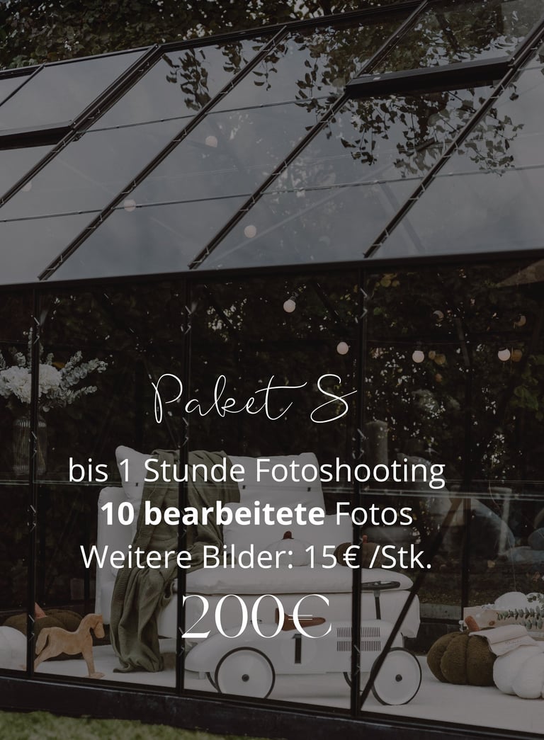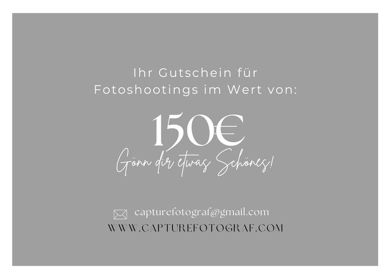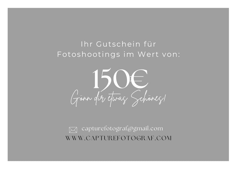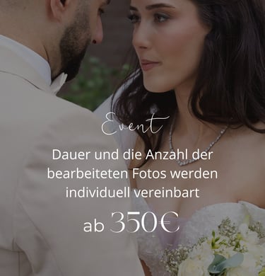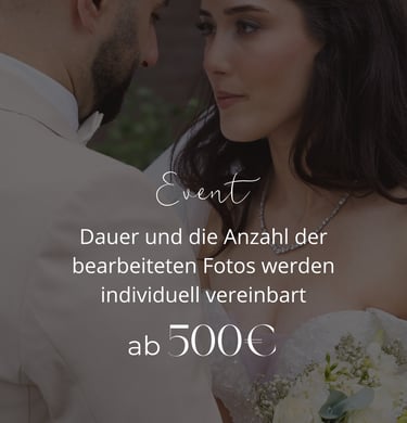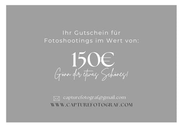 Der Preis für das Fotoshooting umfasst die gemeinsame Vorbereitung und Besprechung aller Details vor dem Termin, damit das Shooting genau nach Ihren Wünschen abläuft. Während des Shootings erstelle ich die Fotos entsprechend dem gewählten Paket.