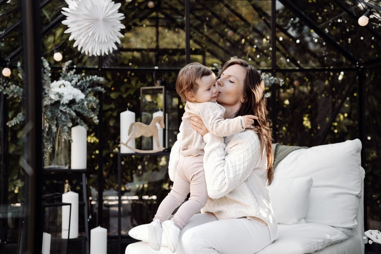 Zärtlichkeit, Nähe, Liebe – ein Fotoshooting von Mutter und Kind fängt die schönste Verbindung ein.